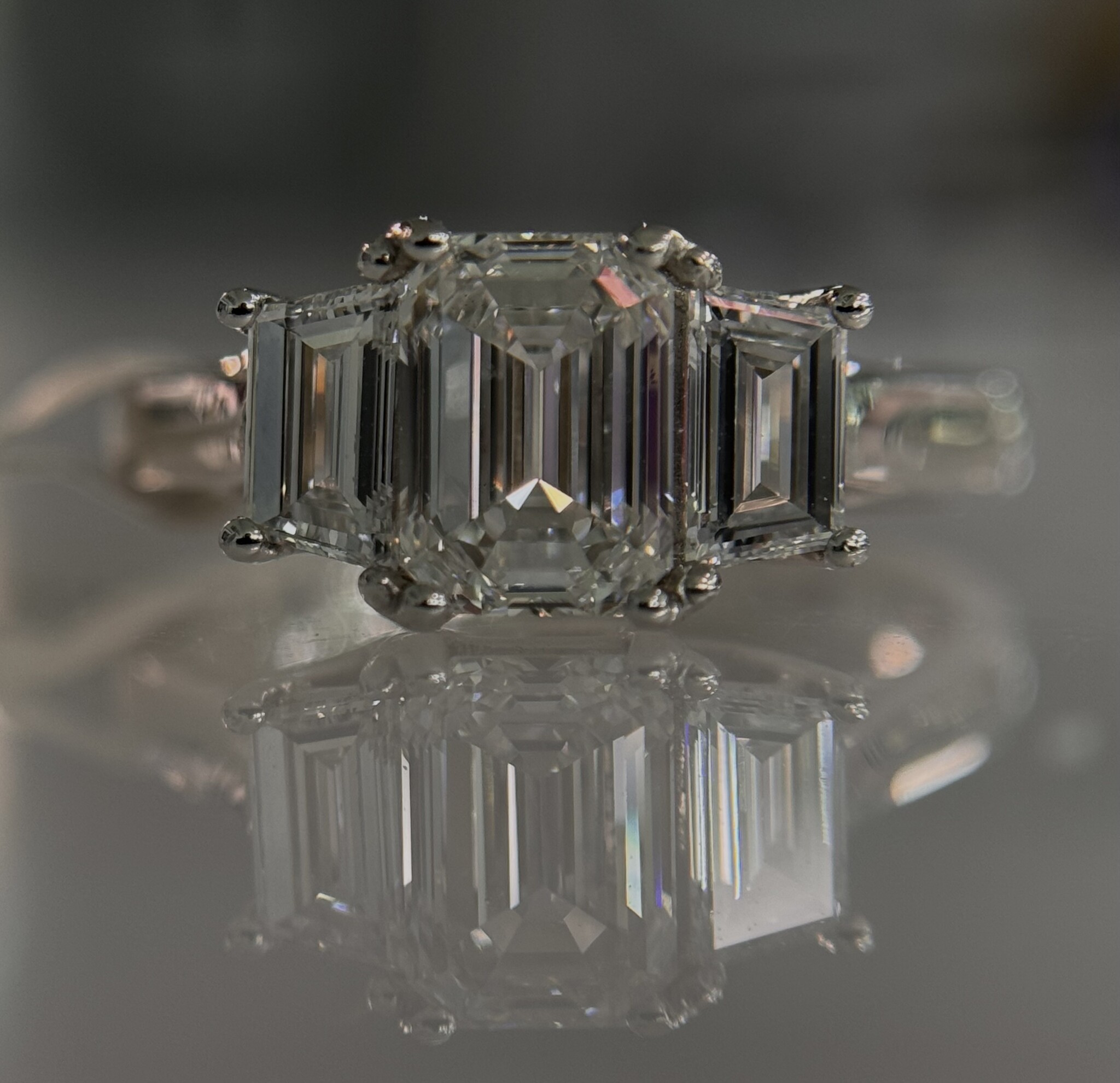 14KW Three Stone Eng Ring 1.26 E SI1 Emerald Cut LG414077311