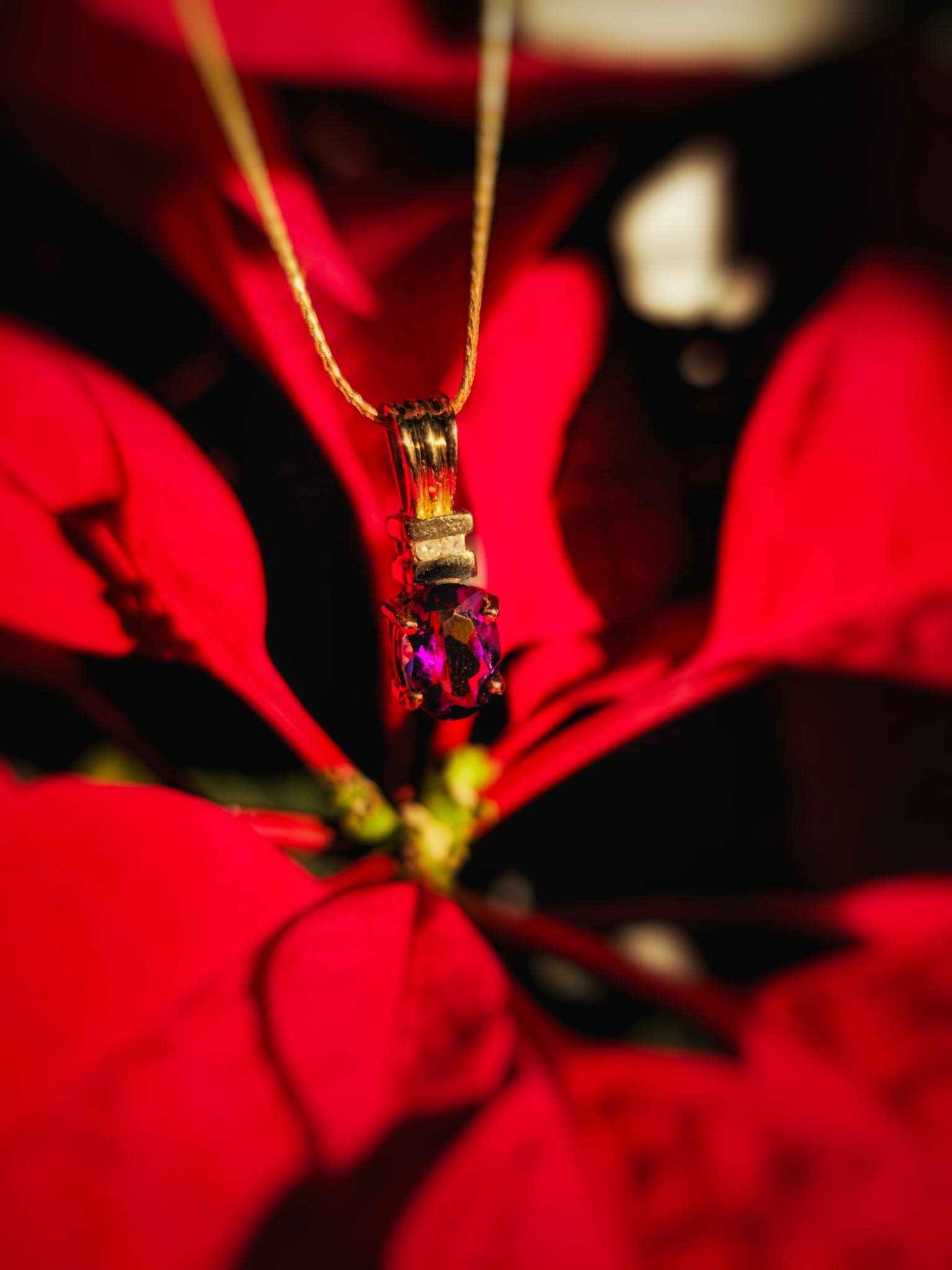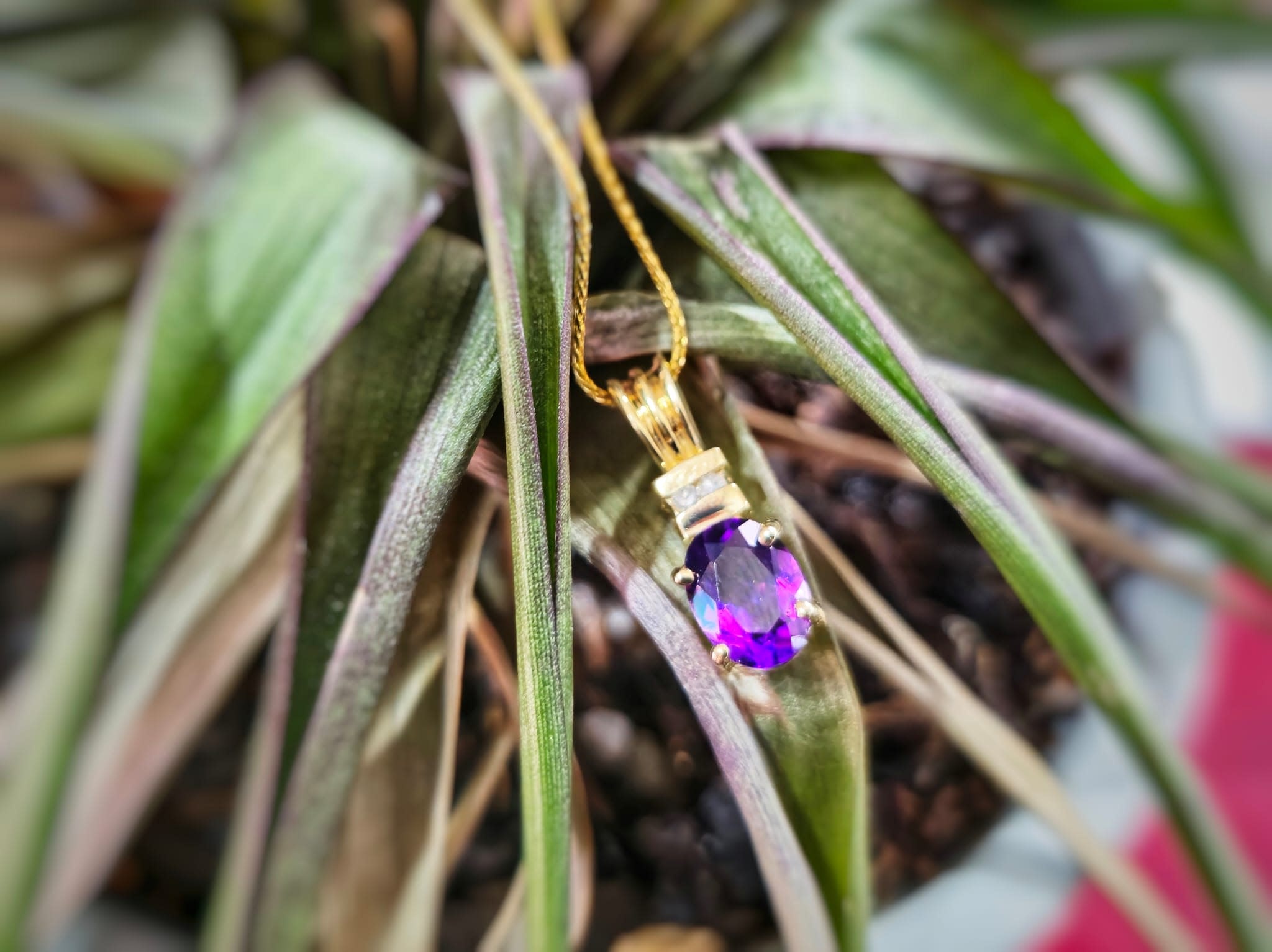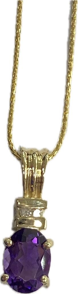 14KW 1.08CT Amethyst and Diamond Halo Pendant