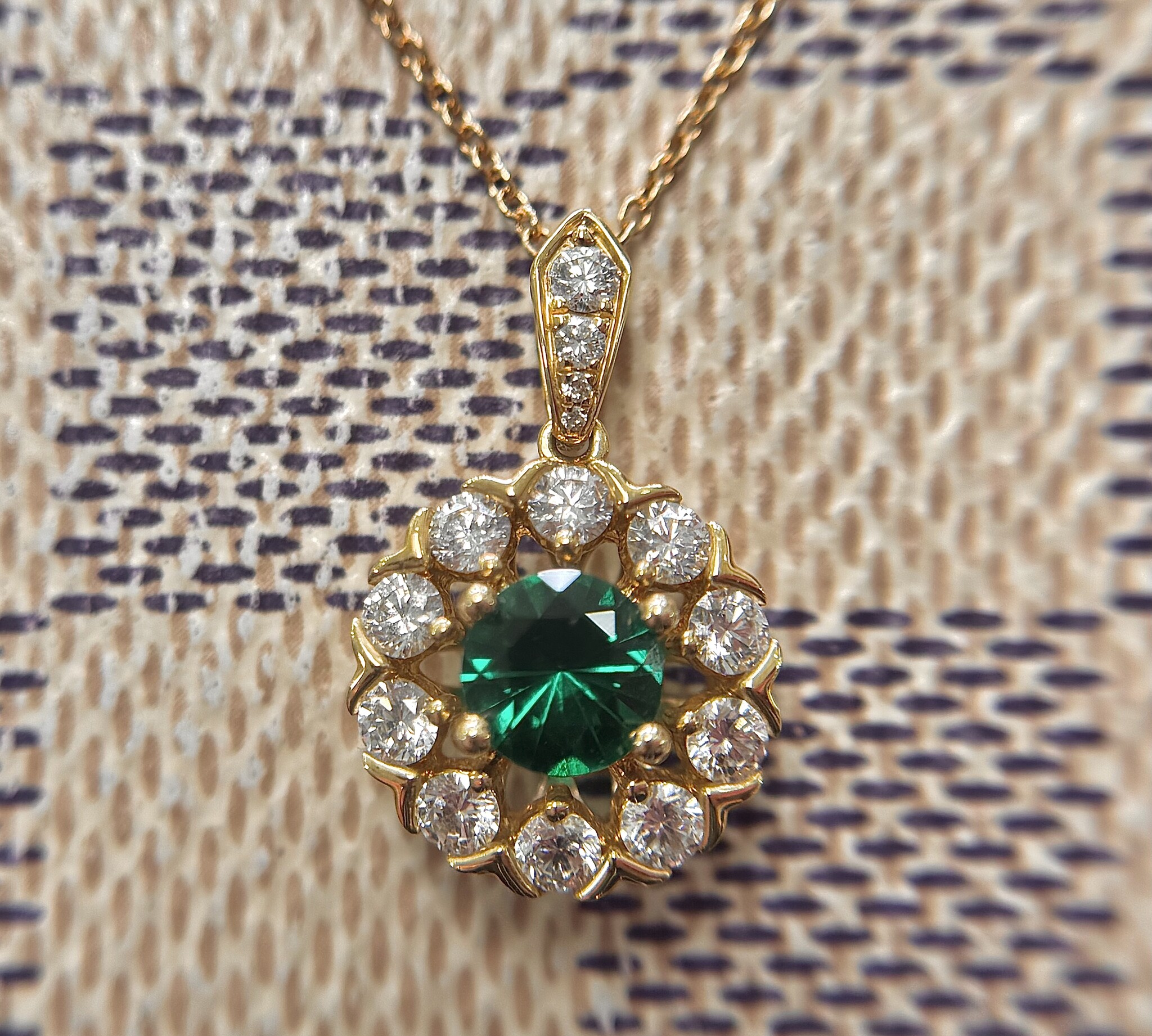 14KY Emerald Pendant with a Diamond Halo 3/4TW