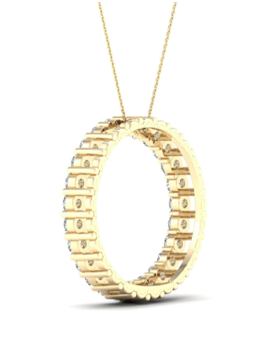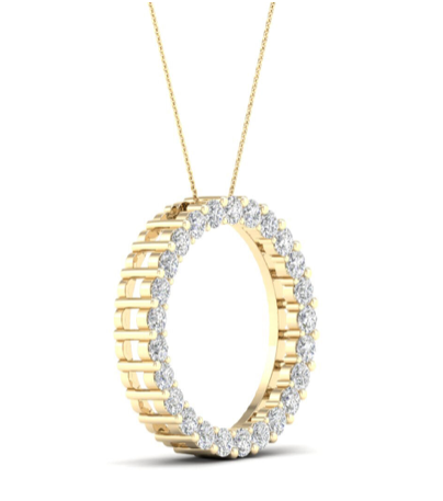 Designer round lab-grown diamond circle pendant set in 14K yellow gold, adorned with 1 ct. t.w. of GH color and VS clarity diamonds. This exquisitely crafted pendant comes secured on a box chain with a spring ring lock. Notably, the diamonds in this piece are certified by IGI, ensuring their authenticity and quality.