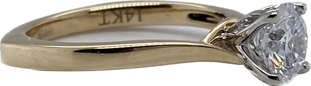 14K Yellow Gold Diamond Engagement Ring with exactly a 1 carat lab grown diamond center stone. The color on this diamond is a D so it's the highest, whitest color possible & the clarity is an SI1. This is a IGI certified diamond.