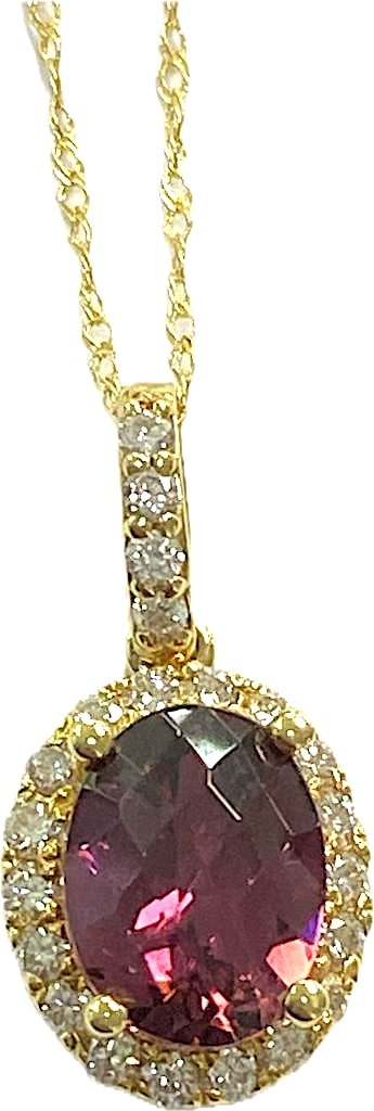 18KY Rubellite and diamond Halo Pendant 1.87tw/.33tw