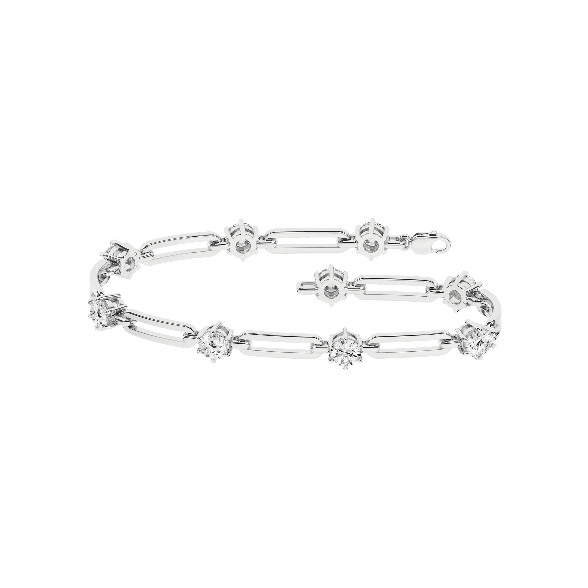 Adorn your wrist with the exquisite elegance of the Open Link Diamond Bracelet. Featuring 3 ctw, this captivating bracelet showcases 9 round lab grown diamonds set in 14KT White Gold. The braclet features a sophisticated open link design that adds a touch of modern flair to the classic diamond bracelet style. The open links allow the diamonds to shine from every angle, creating a captivating visual impact.