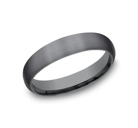 This stunning 4mm Tantalum band is organically blackened and features a slight flat satin finish surface and offers Comfort-Fit on the inside for unforgettable comfort.