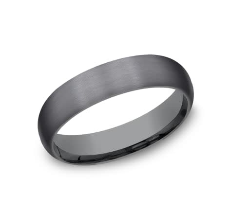 This stunning 5mm Tantalum band is organically blackened and features a slight flat satin finish surface and offers Comfort-Fit on the inside for unforgettable comfort.