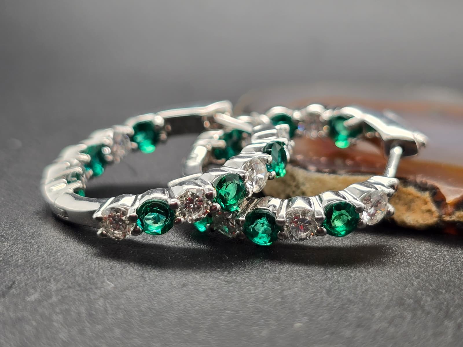 .925 LG Dia and Emerald Hoop Earrings 1.50cttw