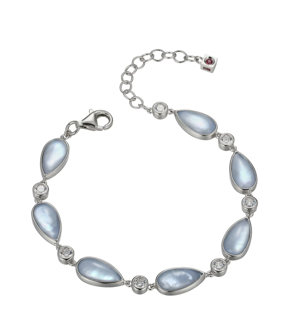 .925 Rhodium Plated Mother Of Pearl Bracelet