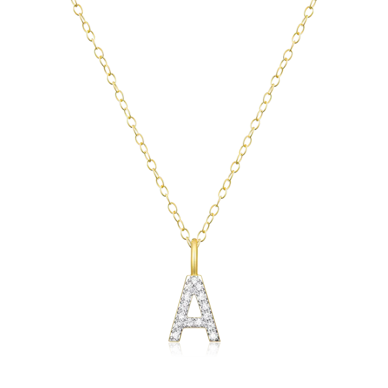 "A" Initial Pendant Necklace in 14K Yellow Gold Plated Sterling Silver with Lab Diamonds
