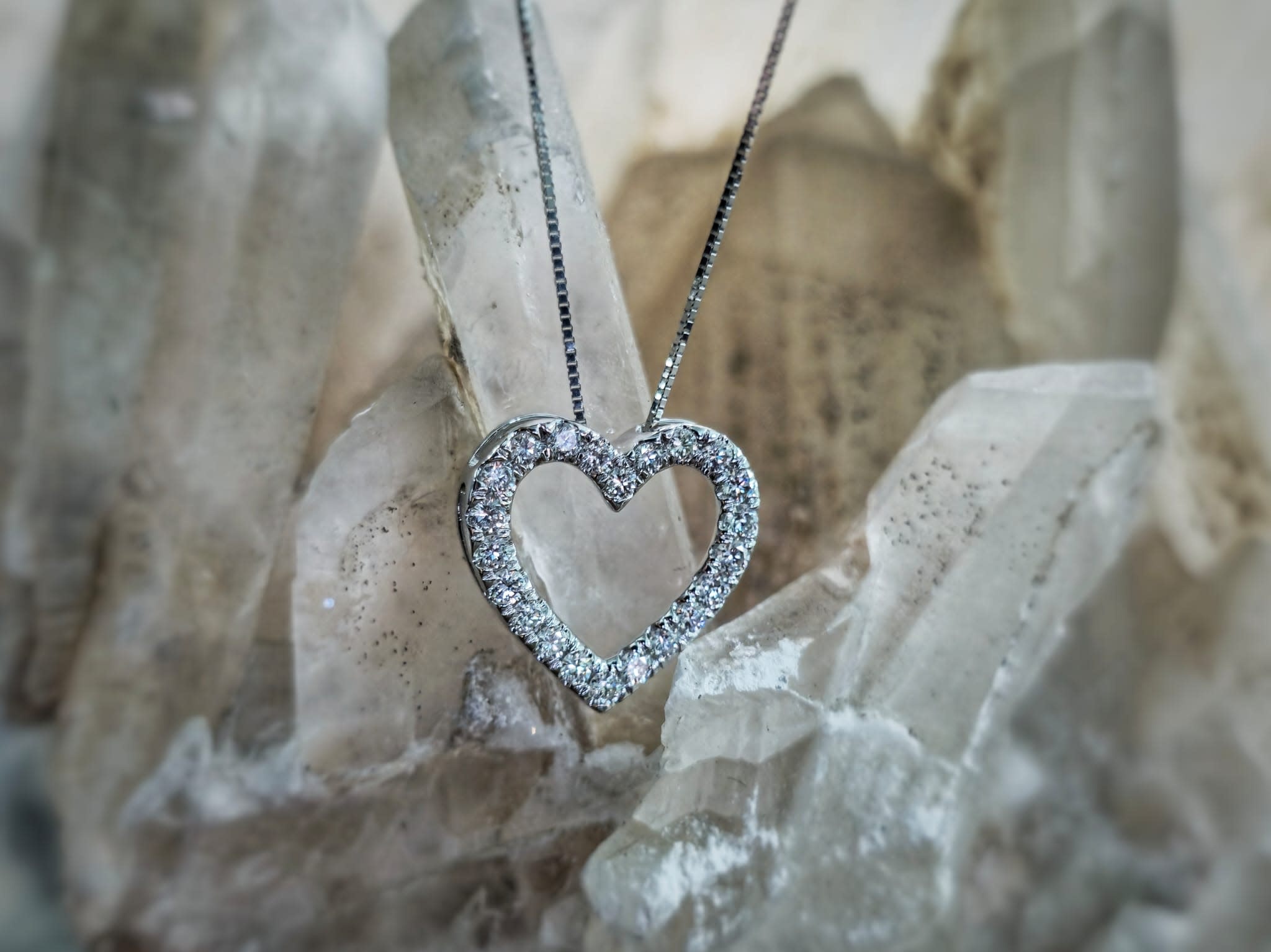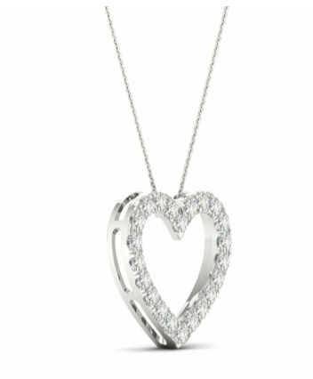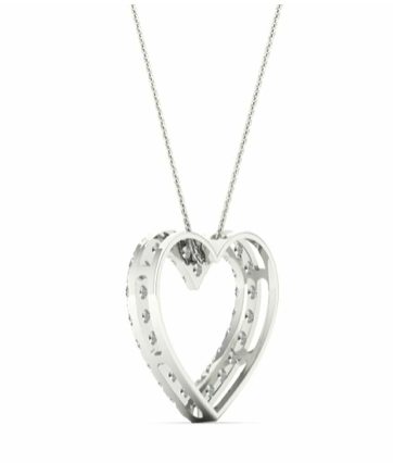 Shimmering round lab-grown diamond heart pendant set in 14K white gold, adorned with 1/2 ct. t.w. of GH color and VS clarity diamonds. This captivating pendant is elegantly suspended from a box chain, which fastens securely with a spring ring lock. It's worth noting that the diamonds gracing this piece are certified by IGI, attesting to their GH color, VS clarity, and the utmost level of craftsmanship.