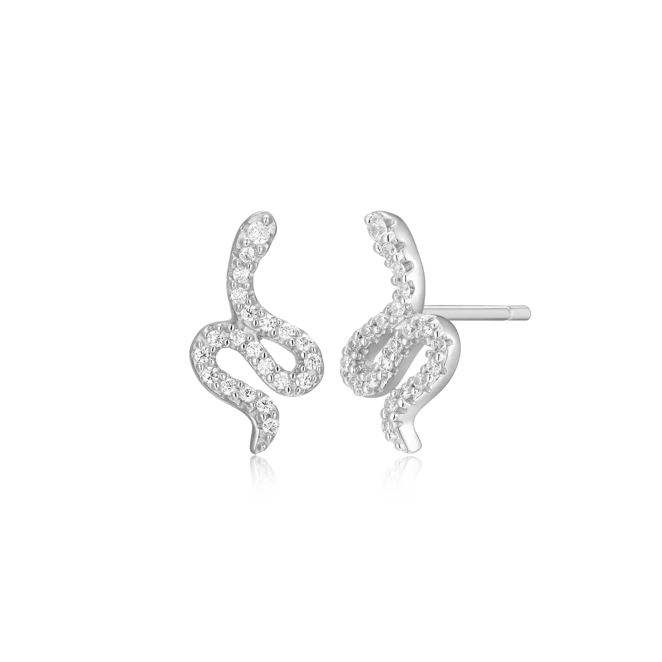 Snake Stud Earrings in Rhodium Plated Sterling Silver with Lab Diamonds
