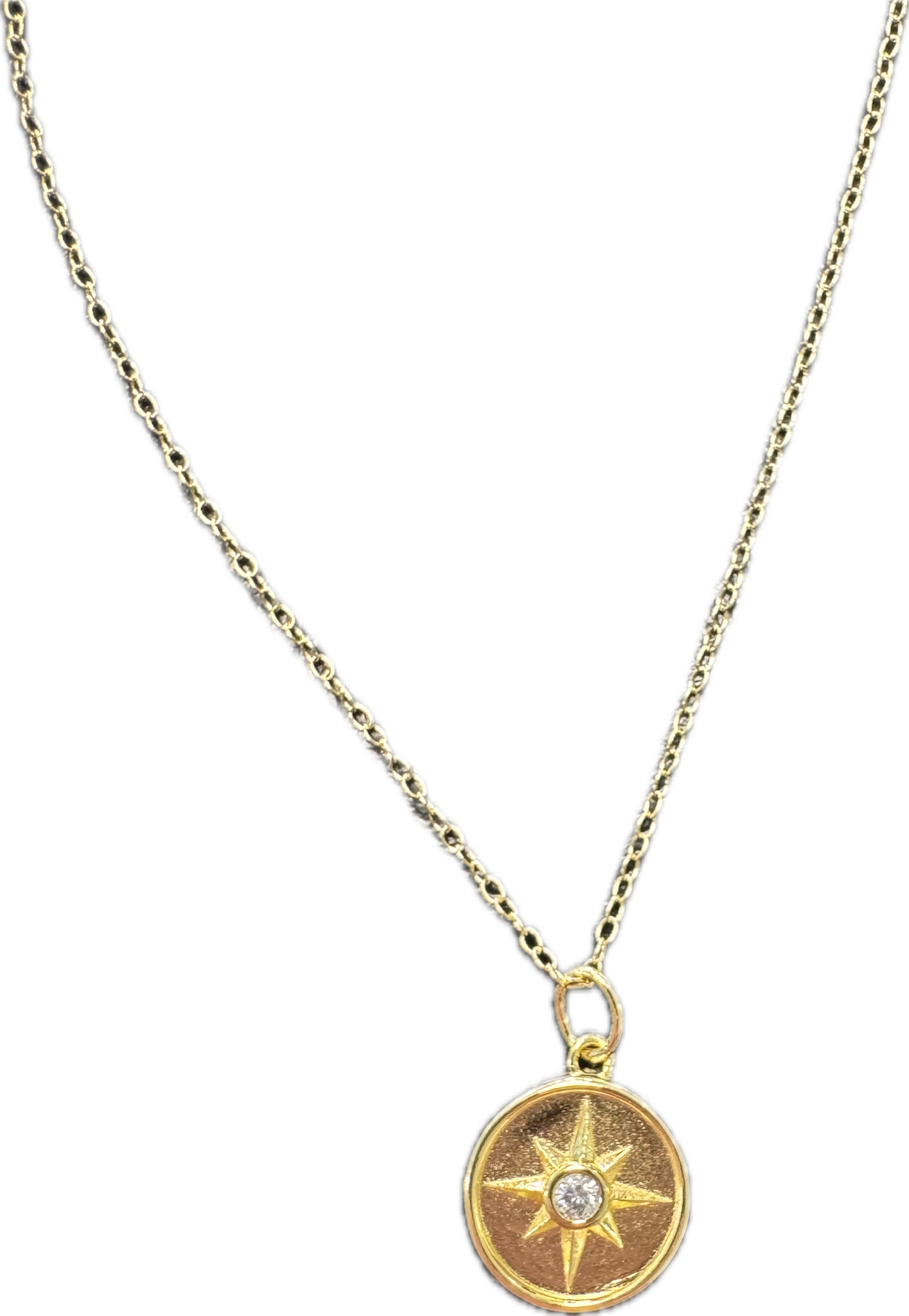 Yellow Gold Plated Compass Pendant with Lab Grown Diamond